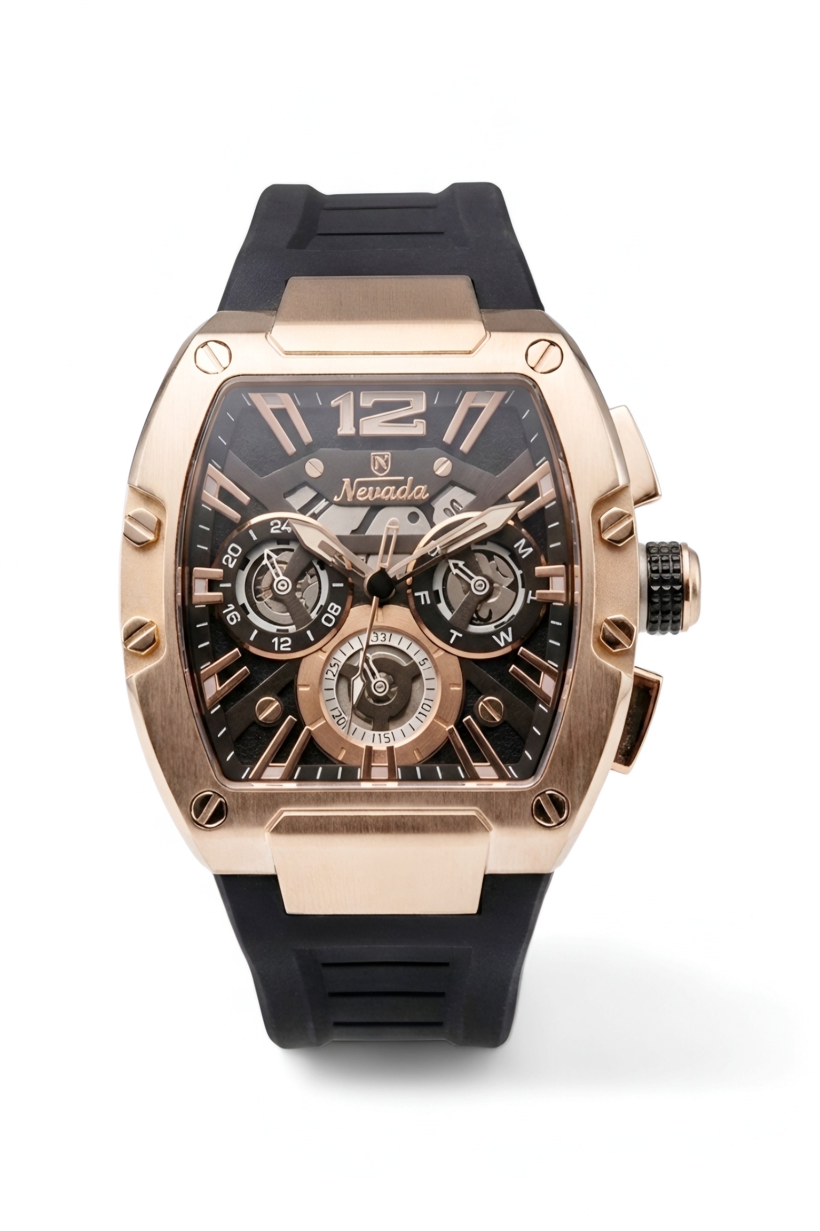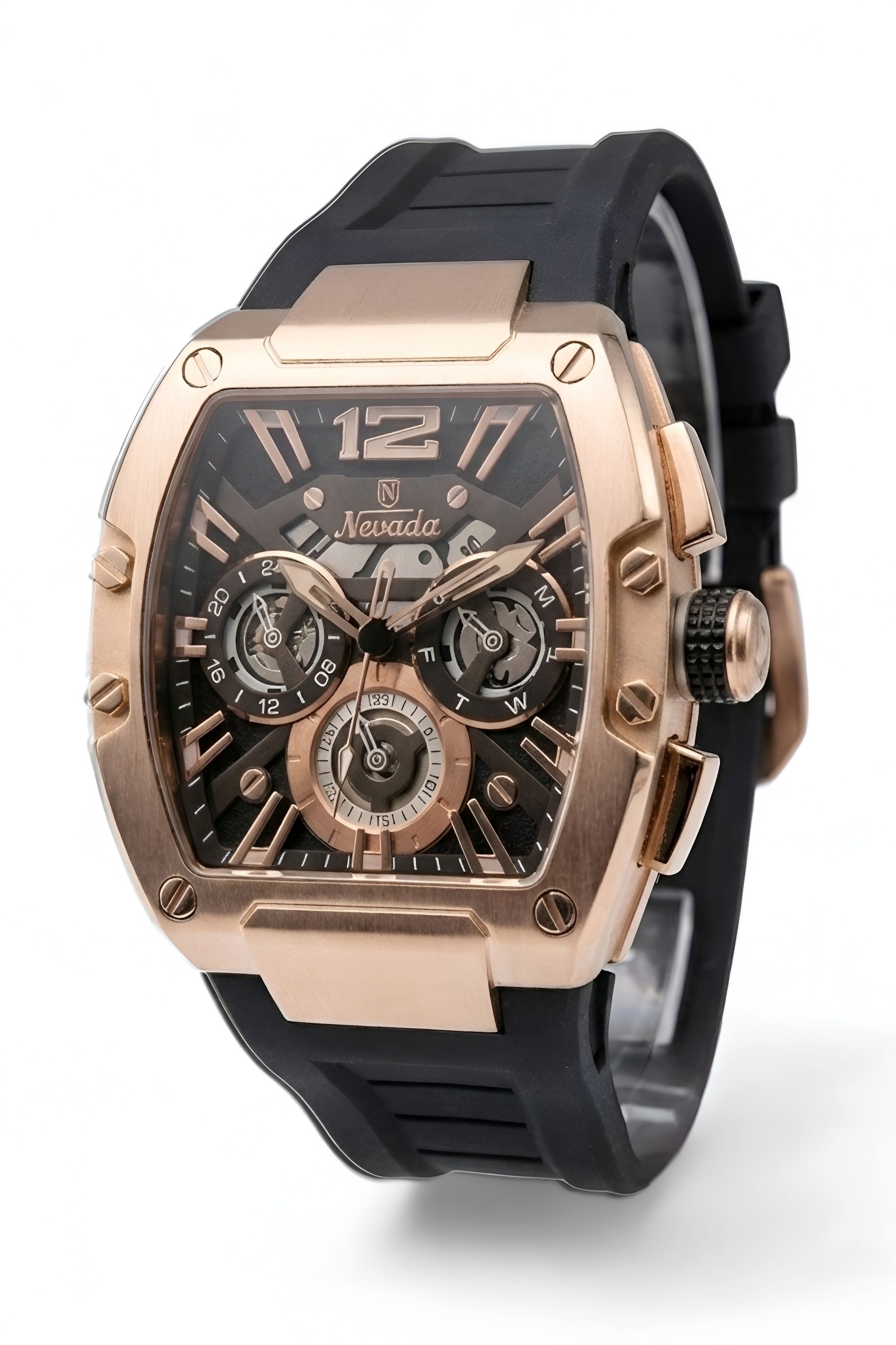 ساعت مردانه اسپرت نوادا با بند رابر مشکی و قاب رزگلد