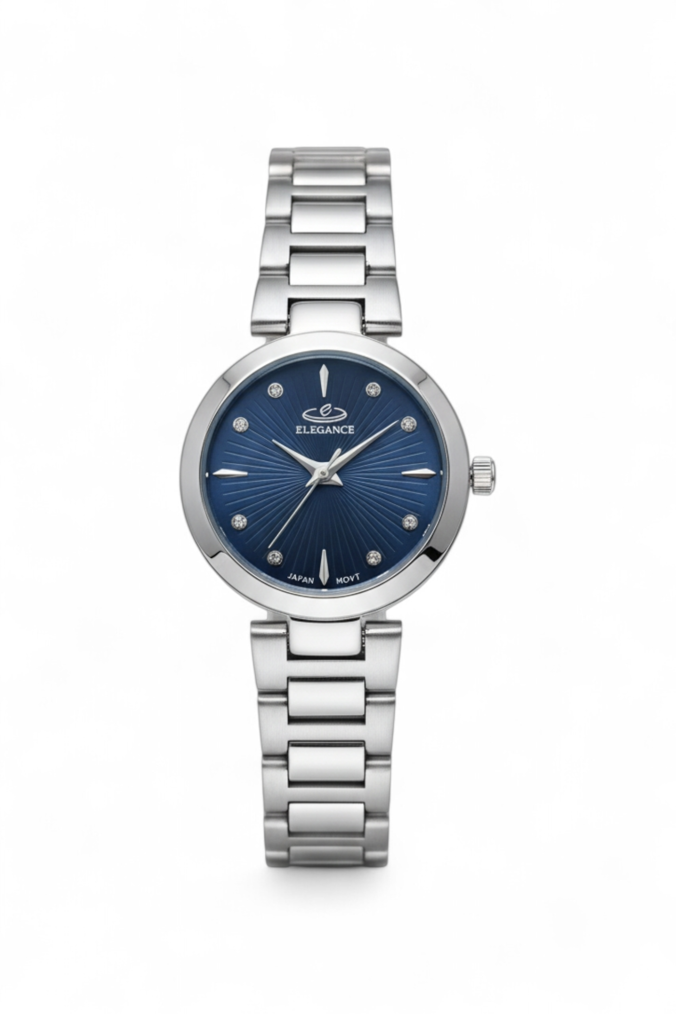 ساعت زنانه الگانس از آن دسته مدلهایی است که با یک نگاه، کیفیت ساخت و ظرافت طراحی آن مشخص میشود. استفاده از استیل باکیفیت در بند و قاب باعث شده این ساعت طول عمر بالایی داشته باشد و در برابر تغییر رنگ مقاوم بماند. صفحهی آبی رنگ با بافت شعاعی و نگینهای کریستالی، ساعت را از مدلهای ساده بازار متمایز میکند و جذابیت آن را دو برابر میسازد.