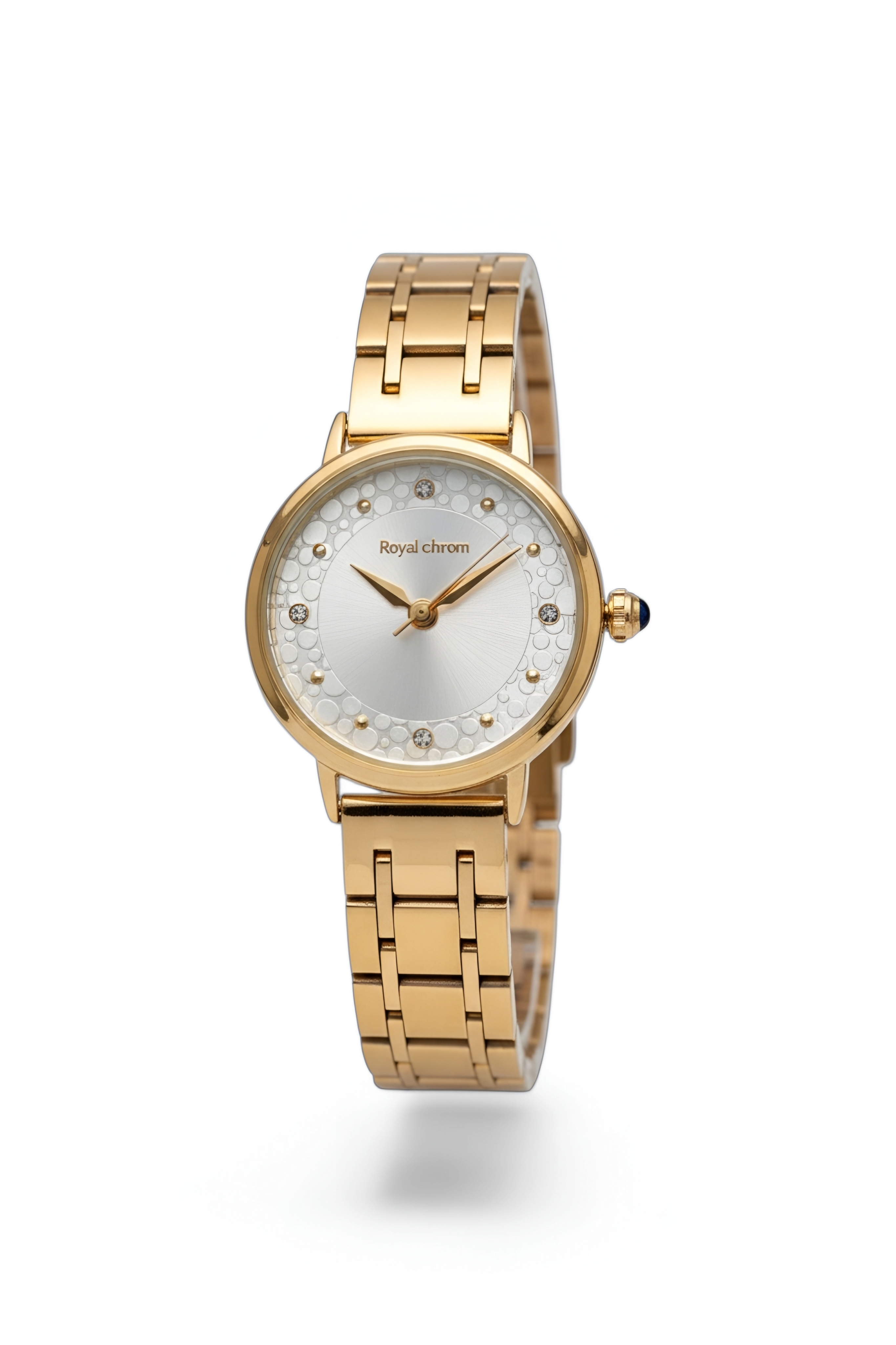 ساعت زنانه royal chrom یکی از مدلهای پرطرفدار در دسته ساعتهای کلاسیک و ظریف بانوان است. ظاهر ساده با بند استیل براق باعث شده این مدل برای استفاده روزمره، محل کار و مهمانی کاملاً مناسب باشد.