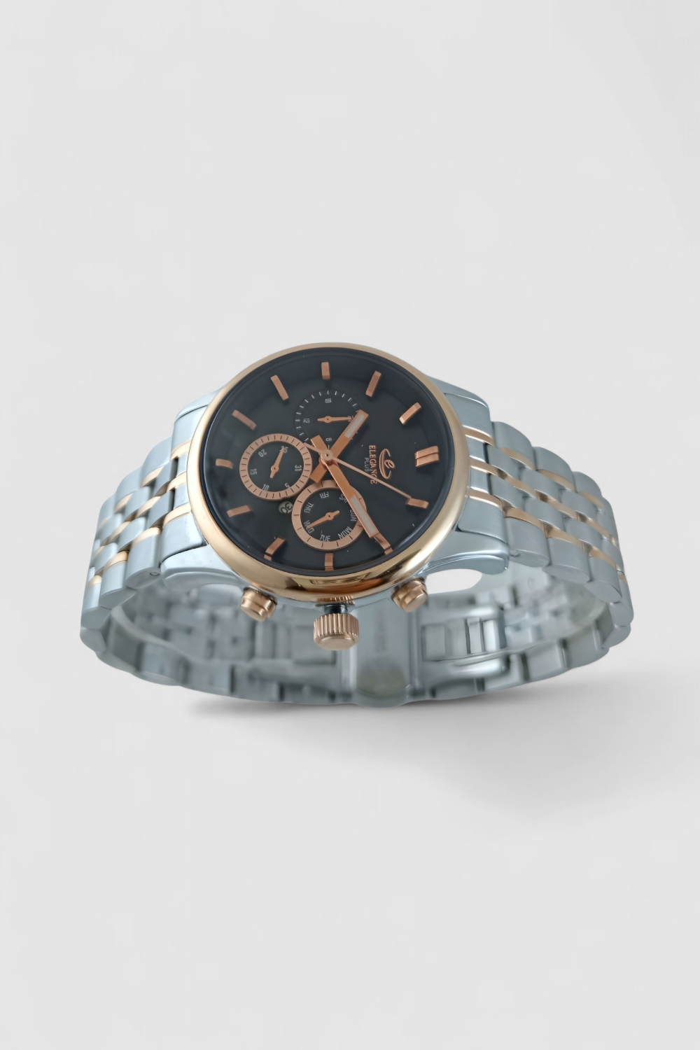 ساعت مچی زنانه اسپرت «الگانس پلاس» یکی از جدیدترین مدلهای برند معتبر RoseTime.ir است. این ساعت با ترکیبی از المانهای مدرن و کلاسیک، جلوهای شیک و متمایز به استایل شما میبخشد. بند فلزی دو رنگ (استیل و رزگلد) آن را به انتخابی لوکس و زنانه تبدیل کرده است. صفحه مشکی با نشانگرها و عقربههای مسی نیز تضاد رنگی چشمگیر و خوانایی بالایی ایجاد میکند.