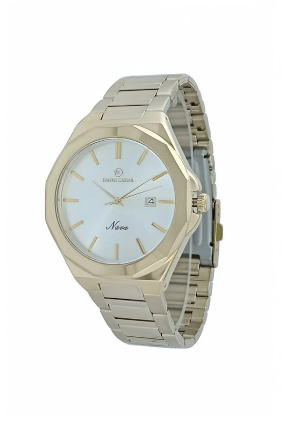 ساعت ست کلاسیک دنیل سزار | بند طلایی، صفحه سیلور، قاب چندوجهی