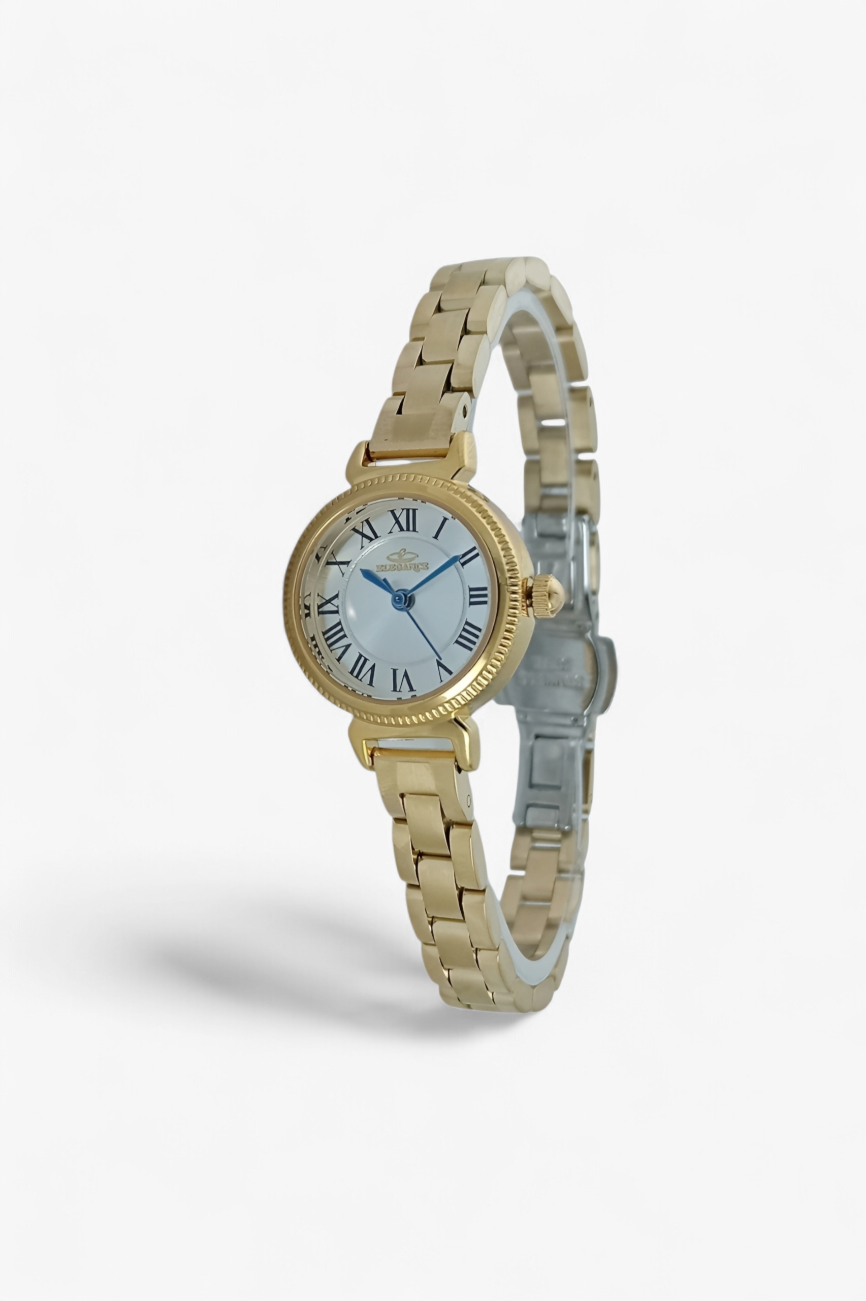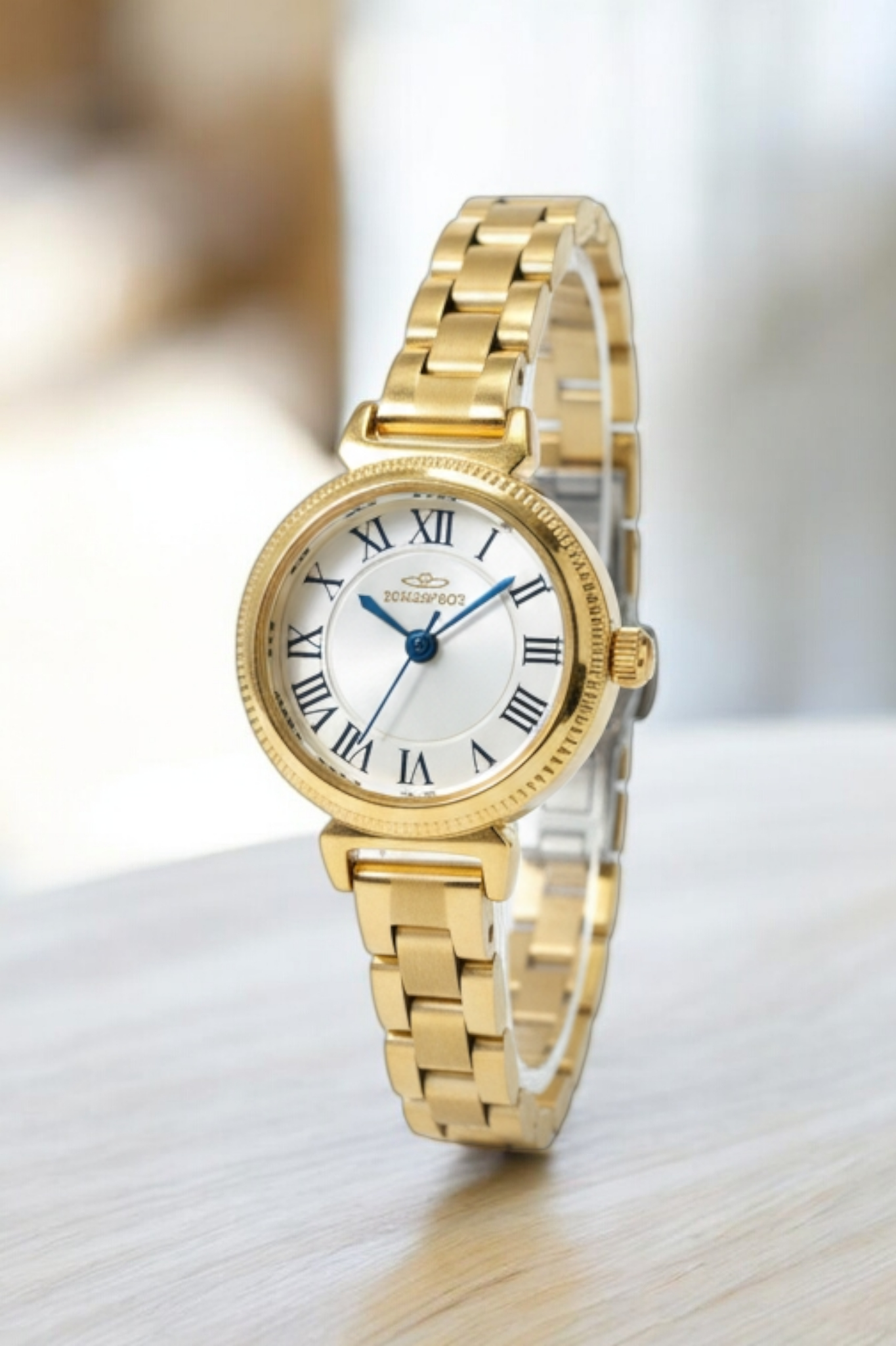 این مدل الگانس یکی از محبوبترین ساعتهای زنانه ظریف است که با طراحی کلاسیک و بند باریک طلایی، بهراحتی با هر نوع استایلی ست میشود. اعداد رومی حس اصالت و کلاس ویژهای ایجاد میکنند و اندازه کوچک قاب باعث شده این ساعت برای دستهای ظریف فوقالعاده مناسب باشد. همچنین به دلیل کیفیت خوب آبکاری، رنگ آن ثابت مانده و در استفاده روزمره دوام بالایی دارد.