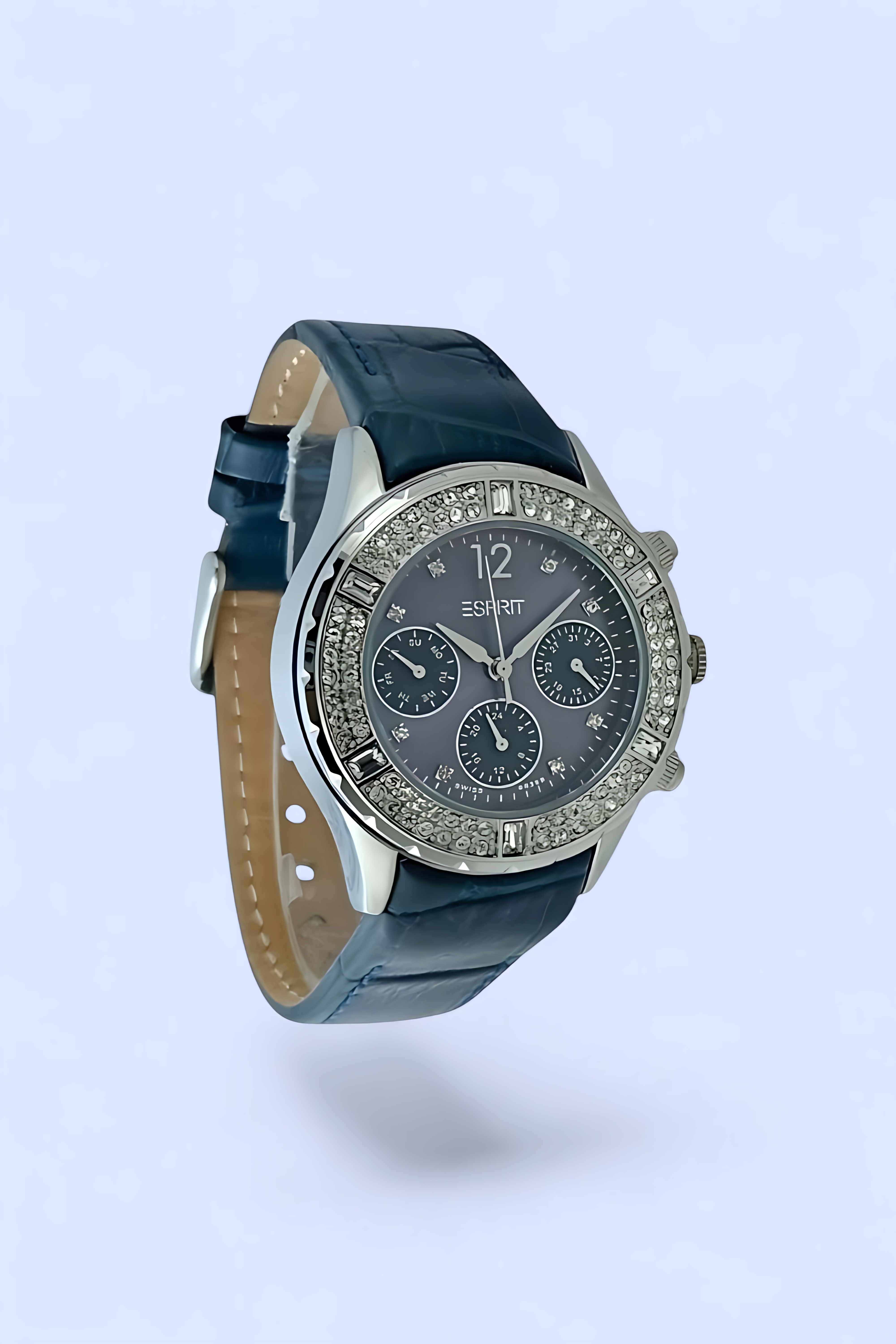 ساعت مچی زنانه اسپریت با طراحی لوکس و ظاهری درخشان، انتخابی ایدهآل برای بانوانی است که به شیکپوشی و جزئیات اهمیت میدهند. این مدل با بند چرمی مرغوب به رنگ سرمهای، احساس راحتی و ظرافت را همزمان به مچ شما هدیه میدهد. قاب استیل براق آن با نگینهای ظریف و درخشان تزئین شده که جلوهای چشمگیر ایجاد میکند. صفحه سرمهای با سه موتور فعال (از نوع دیت) علاوه بر زیبایی، عملکرد دقیقی در نمایش زمان، تاریخ روز و تاریخ هفته دارد. قفل معمولی این ساعت استفاده روزانه را آسان میکند و مقاومت آن در برابر آب در حد شستوشوی دست، خیال شما را از بابت پاششهای روزمره آسوده میسازد. این ساعت میتواند تکمیلکنندهای شیک برای استایل رسمی، نیمهرسمی و حتی روزمره شما باشد.