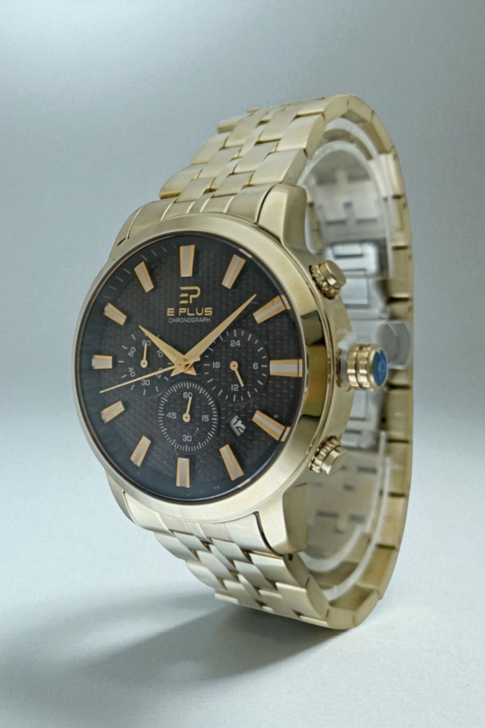 ساعت مچی مردانه سه موتوره الگانس پلاس با بند فلزی طلایی