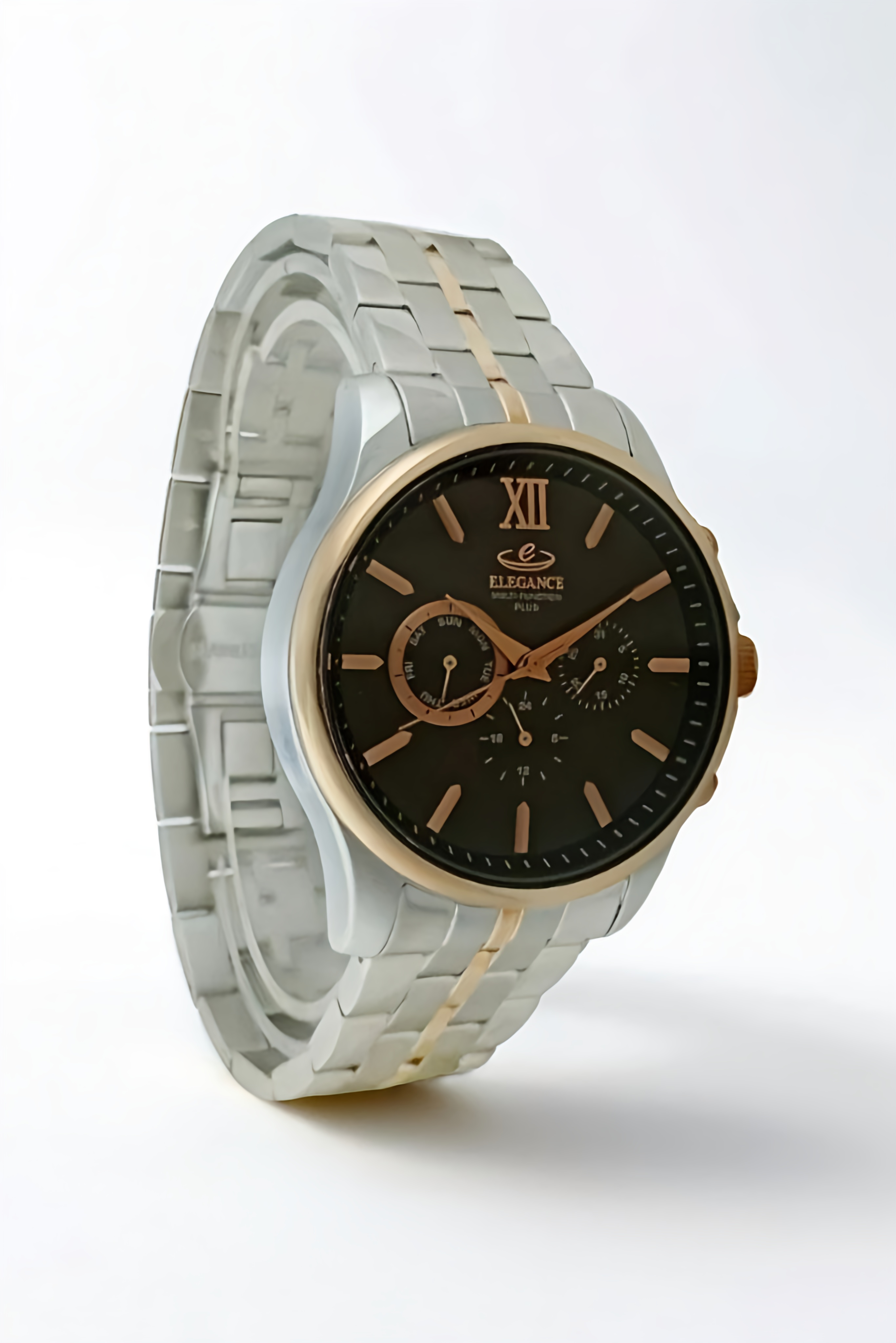ساعت مچی مردانه الگانس مدل فول تایم با ترکیب رنگ جذاب استیل و رزگلد، یکی از خاصترین مدلهای این برند محسوب میشود. این ترکیب شیک و محبوب، جلوهای رسمی و در عین حال مدرن به استایل آقایان میبخشد.