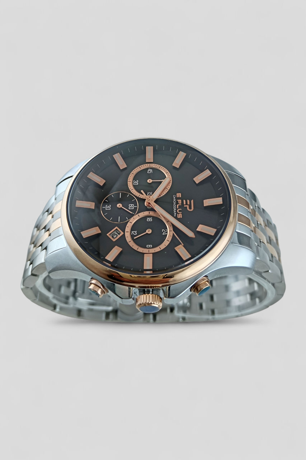 مدل الگانس E Plus از جمله ساعتهایی است که کیفیت ساخت و ظاهر لوکس را در کنار عملکرد دقیق ارائه میدهد. سه موتور فعال کورنوگراف با دقت بالا کار میکنند و برای کسانی که به جزئیات و کارکردهای واقعی اهمیت میدهند یک امتیاز مهم محسوب میشود.