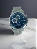 این مدل با صفحه سورمهای جذاب و نمایشگرهای سه موتوره، ظاهری شیک و مدرن دارد که برای استفادههای رسمی و روزمره مناسب است. نشانگرهای اعداد و عقربههای ساعت با طراحی مینیمال، جلوهای لوکس به ساعت میبخشند.