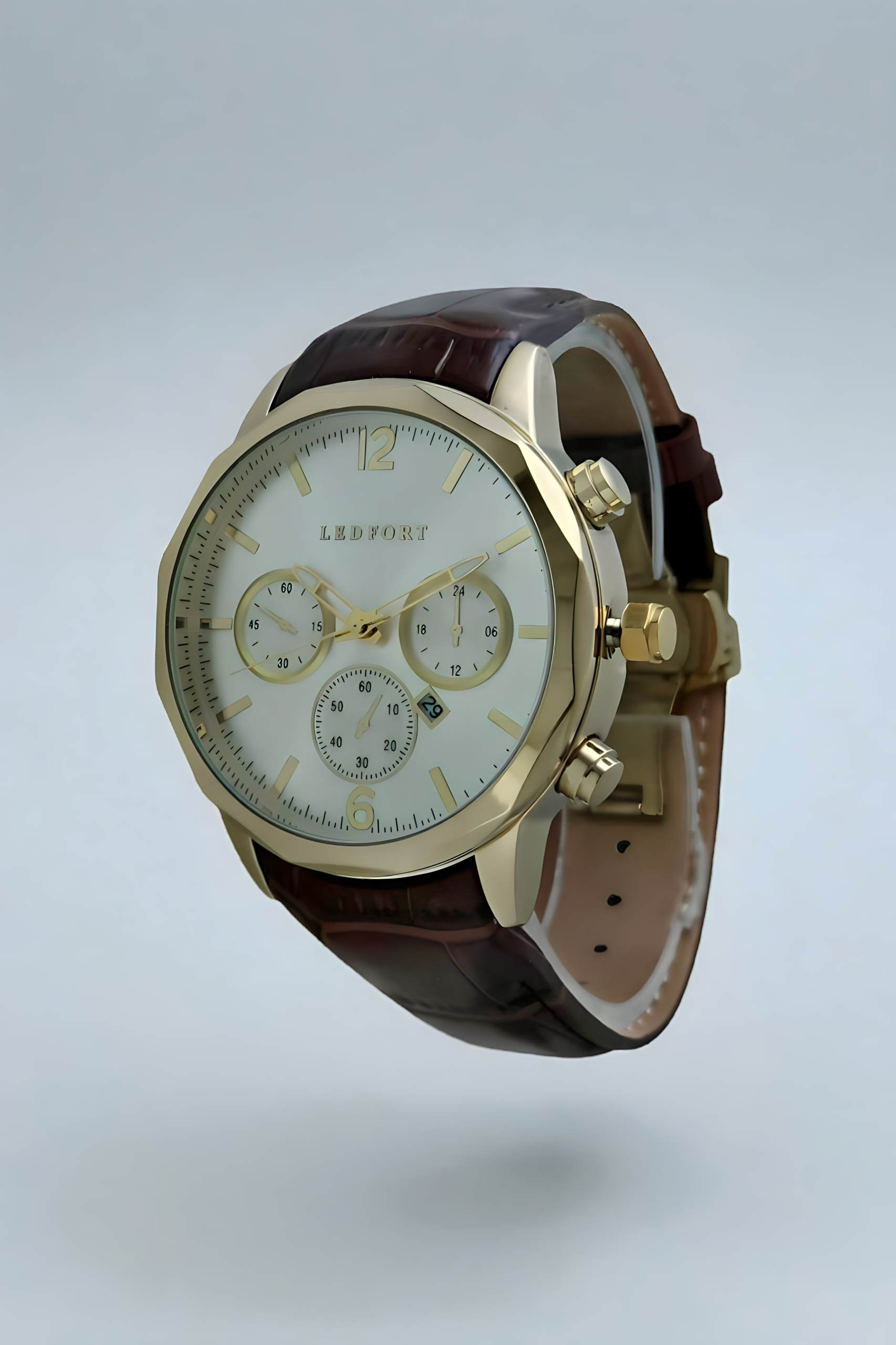 ساعت مچی مردانه بند چرم لدفورت ،طرح سه موتوره