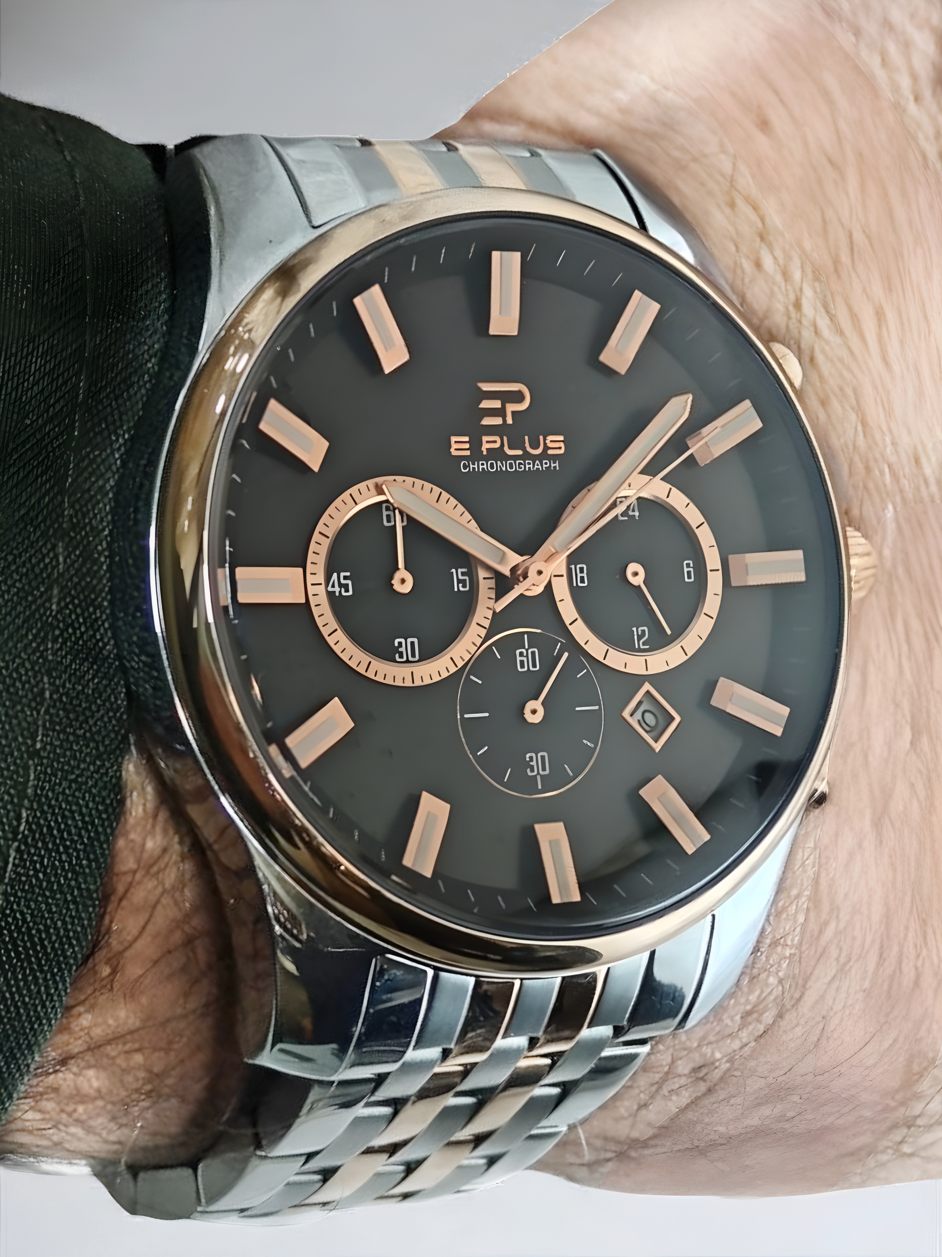 ساعت مچی مردانه الگانس پلاس سه موتوره کورنوگراف با بند فلزی و صفحه دورنگ
